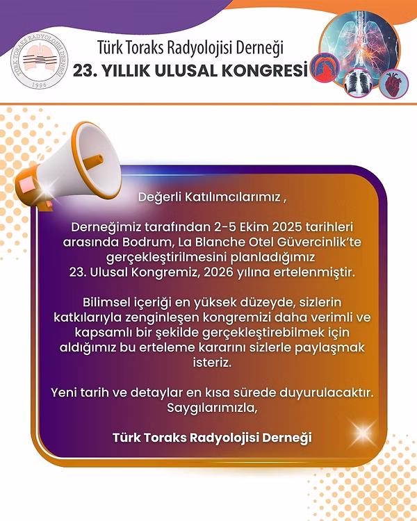 TÜRK TORAKS RADYOLOJİSİ DERNEĞİ OLAĞAN GENEL KURUL TOPLANTISI ÇAĞRISI